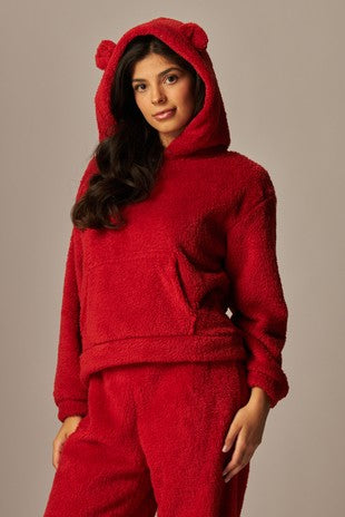 Cozy Fleece Teddy Bear Ear Hoodie Pajama Set